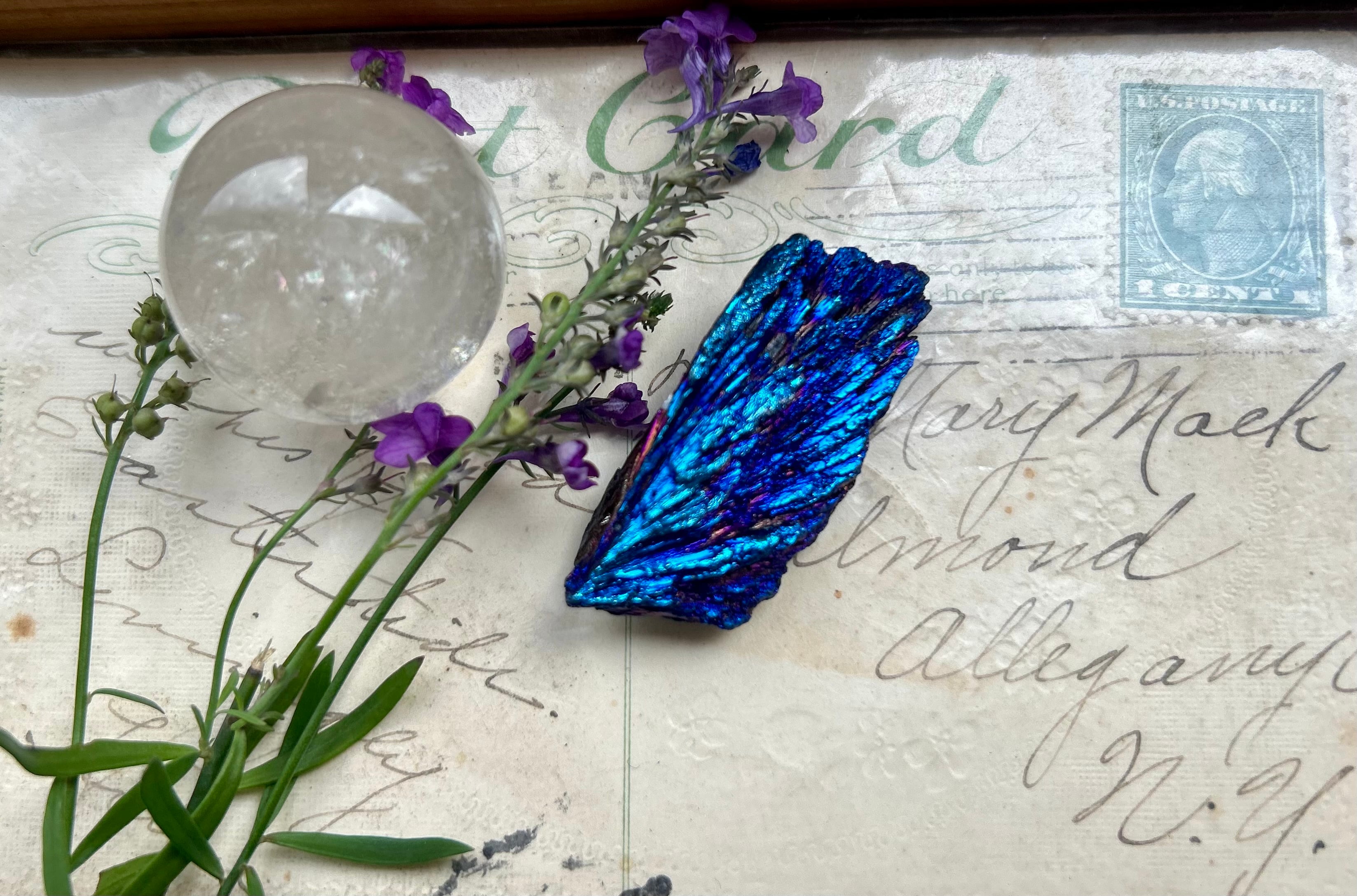 藍色〜紫に光るブラックカイヤナイトが、まるで5次元の入り口のように、魔法の杖となって現れました。
