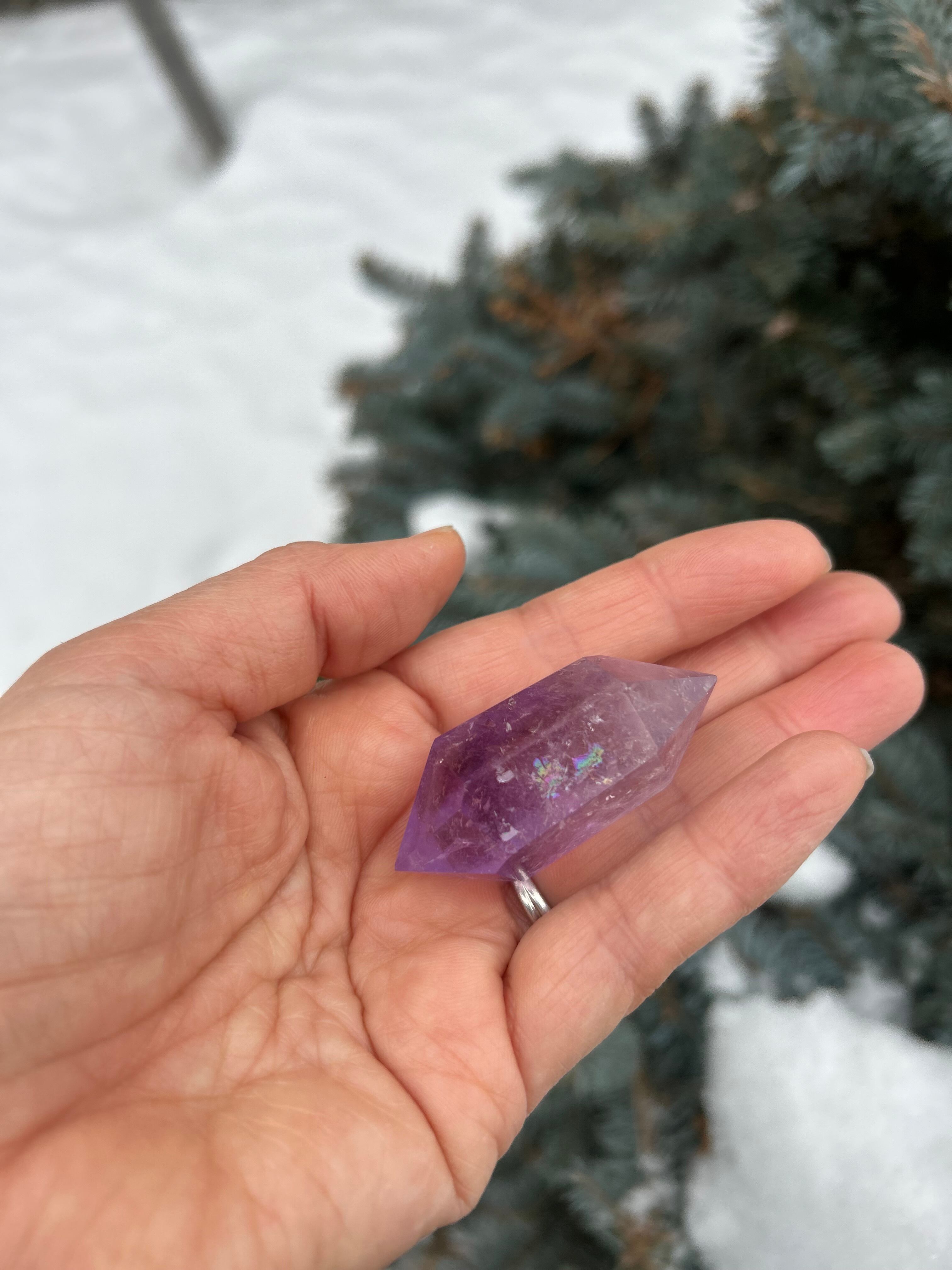 通常、レインボーアメジストのダブルポイントは、浄化力に優れた石、霊的気付きを促すとして知られているのですが、——それは世俗的認識のようです。